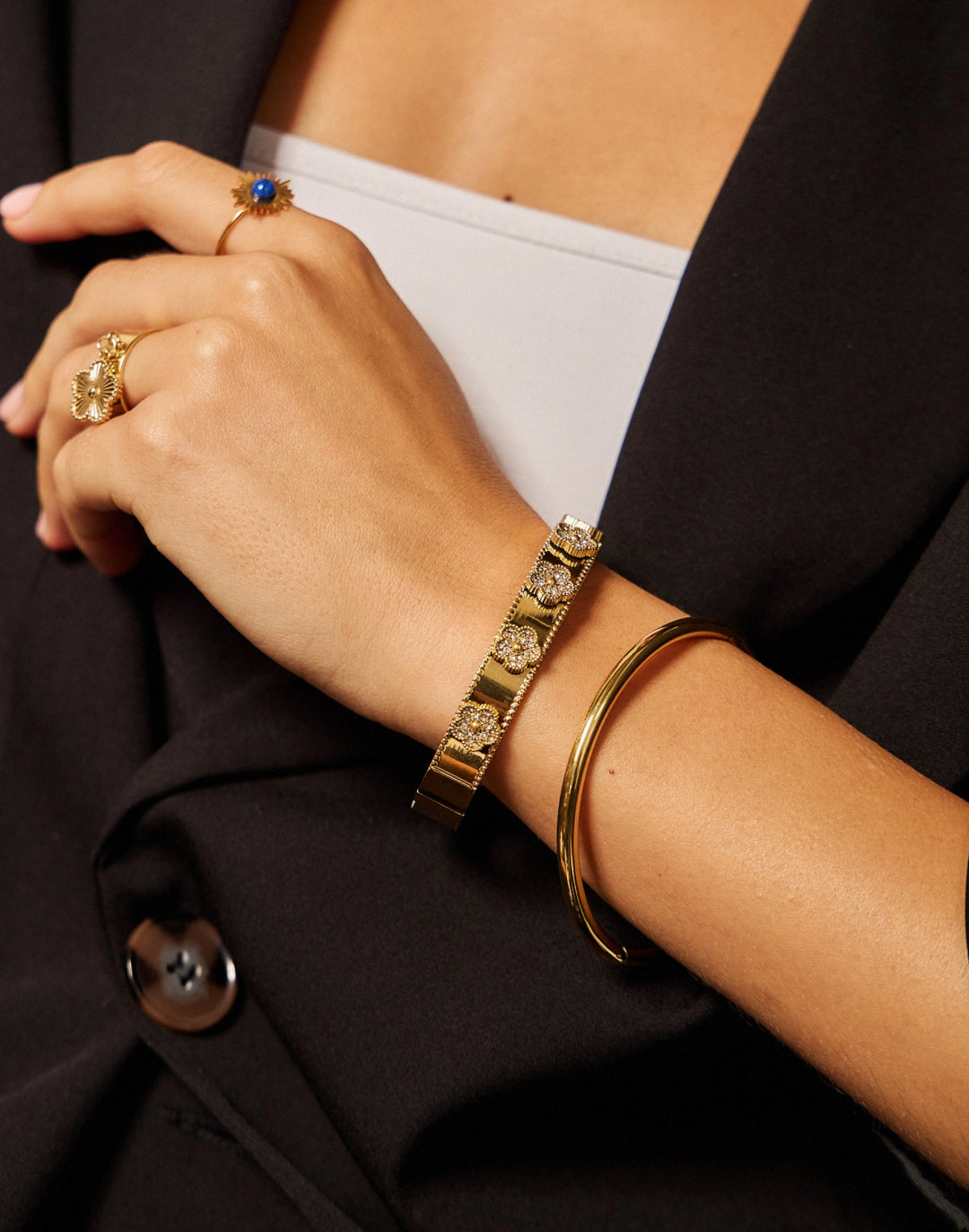 Bracelet jonc Flore doré